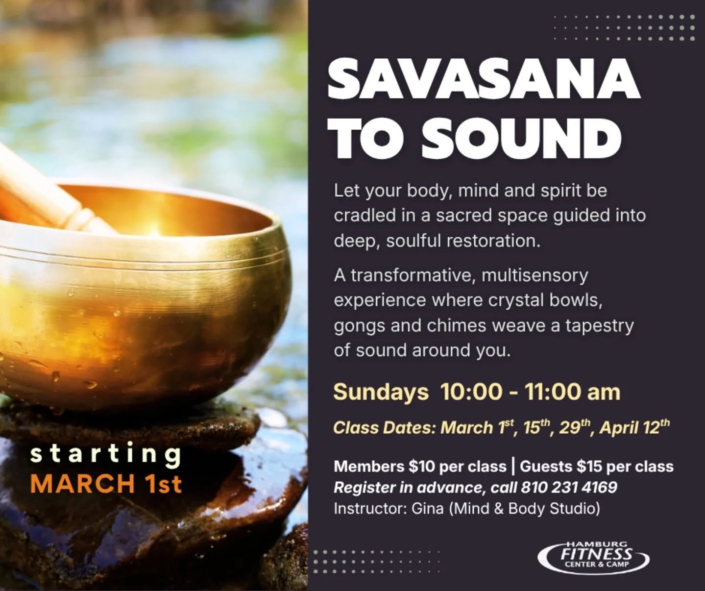 Spots are limited — reserve yours by signing up at the Front Desk or calling 810-231-4169!